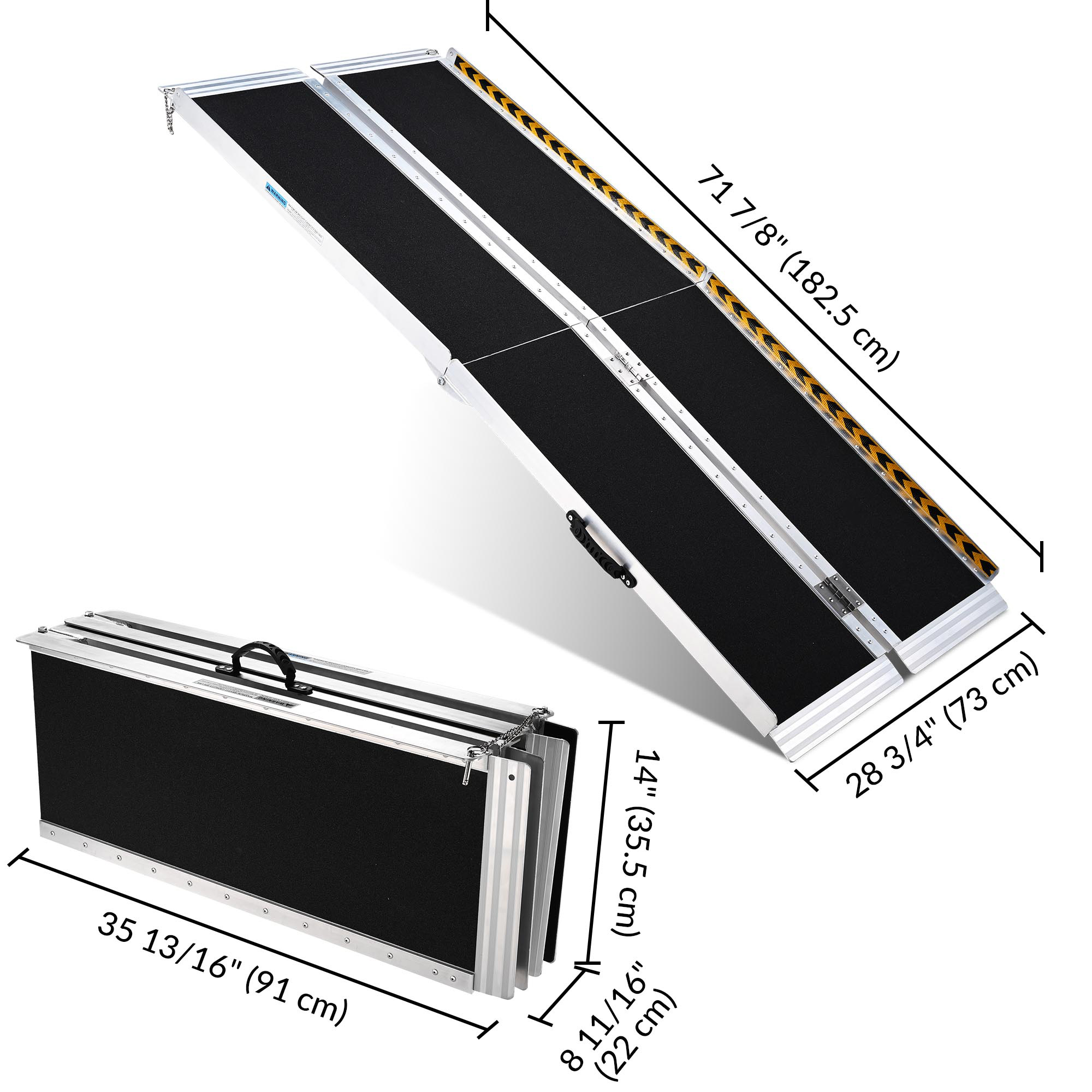 - Effortless Accessibility Anywhere - 6 ft Folding Wheelchair Ramp creates instant access for wheelchairs and scooters. Ideal solution for overcoming stairs, steps, curbs, and other obstacles, making any location accessible