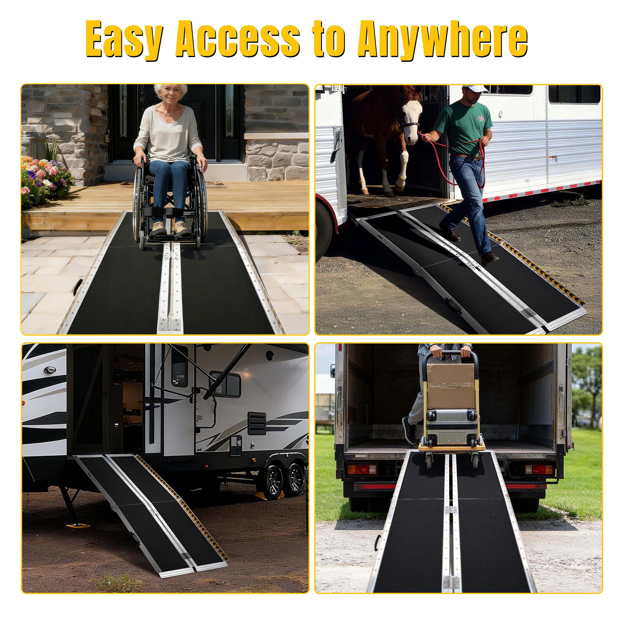 - Versatile Application - Suitable for wheelchairs, scooters, walkers, rollators, trolleys, this foldable aluminum ramp is a must-have for homes, vans, SUVs, trucks, horse transport, and event venues. Ensure inclusivity and accessibility for everyone with this versatile mobility solution